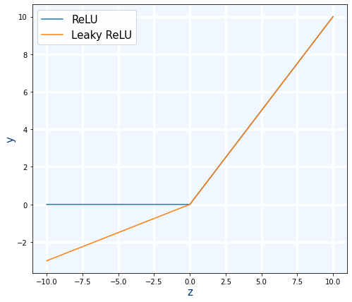Para añadir la función de activación vamos a cambiar un poquito la nomenclatura que hemos usado hasta ahora. La salida de la función lineal a partir de ahora la vamos a llamar z en vez de y ya que la y sigue siendo la salida de la neurona pero después de aplicar la función de activación a z.