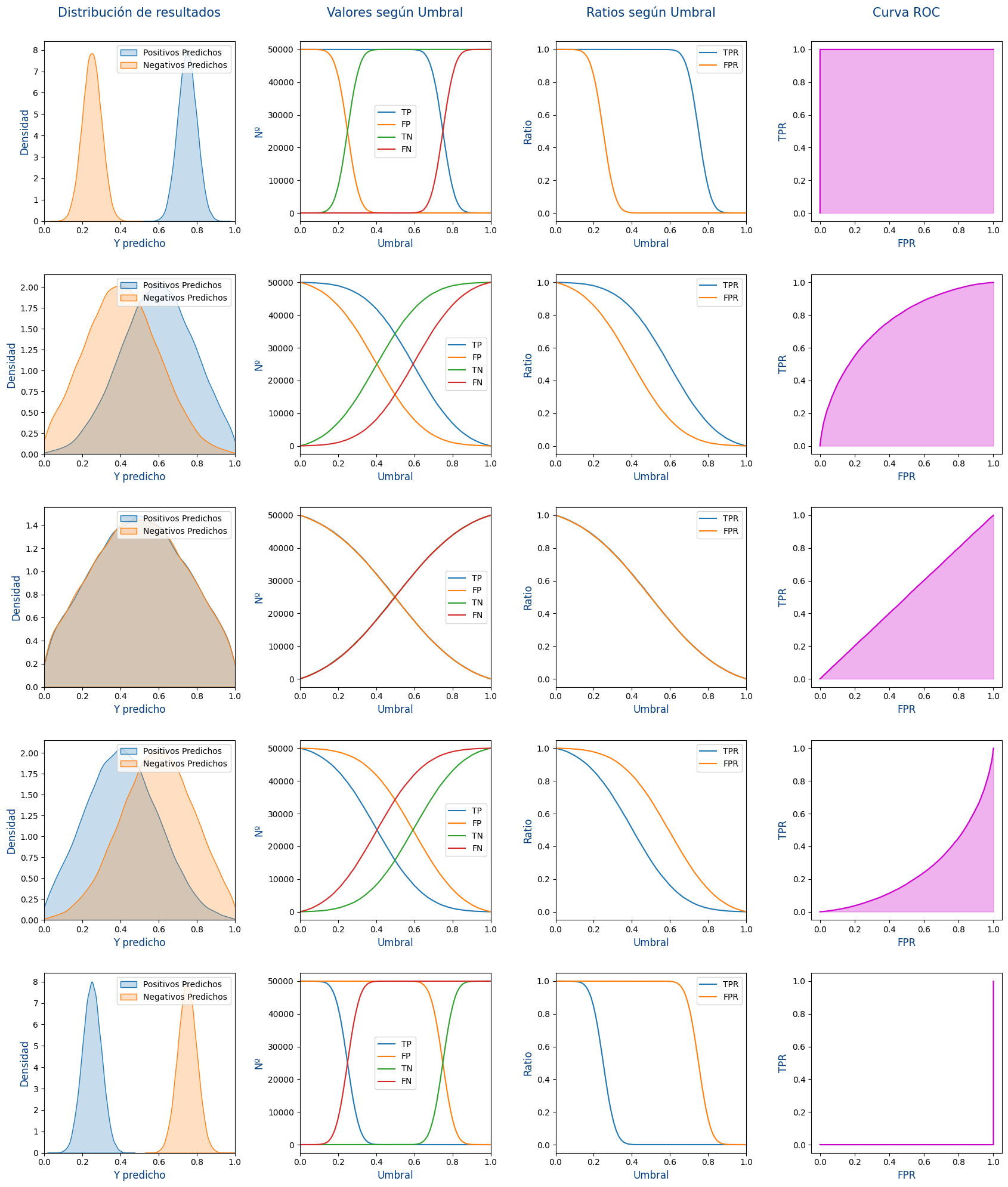Usando los datos de Test, muestra las siguientes métricas en función de la prevalencia [0,1].