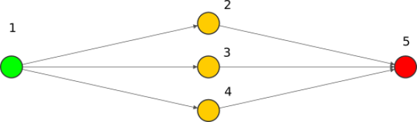 | 5 | $$y_5=w_{5,2}y_2+w_{5,3}y_3+w_{5,4}y_4+b_5$$ | Esta neurona obtiene su entrada de las salidas de las 3 neuronas anteriores que son $y_2$ , $y_3$ e $ y_4$ |