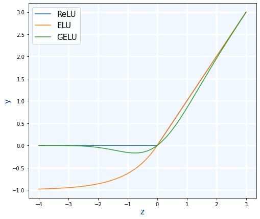 GELU es de la últimas funciones de activación "famosas" que han aparecido. GELU: Se usa con Transformers. La usa Google con BERT y OpenAI en GPT-2 y GPT-3.1)