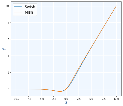 model.add(Dense(3, activation=tf.keras.activations.swish)) model.add(Dense(3, activation="mish"))
