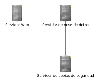 En el siguiente diagrama se vería el ejemplo donde , el servidor web, la base de datos y el servidor de copias de seguridad son servidores distintos: