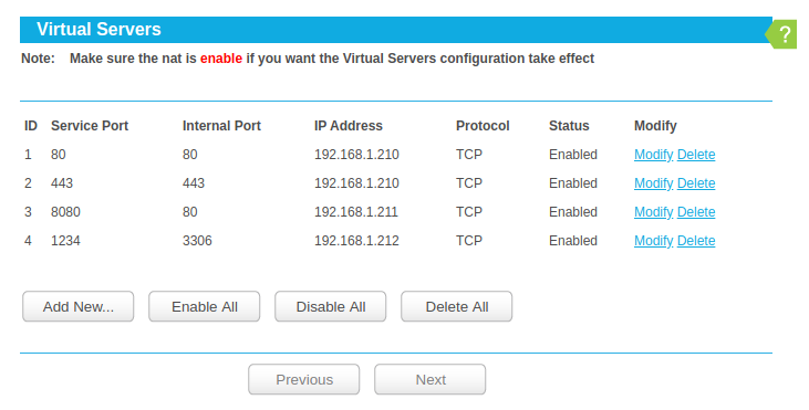 - Service Port: El de puerto que usará el router externamente. Es decir el puerto que se verá desde internet.