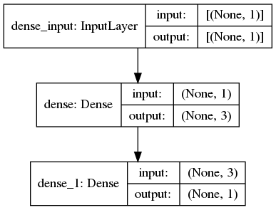 model=Sequential() model.add(Dense(3, input_dim=1)) model.add(Dense(1)) model.compile()
