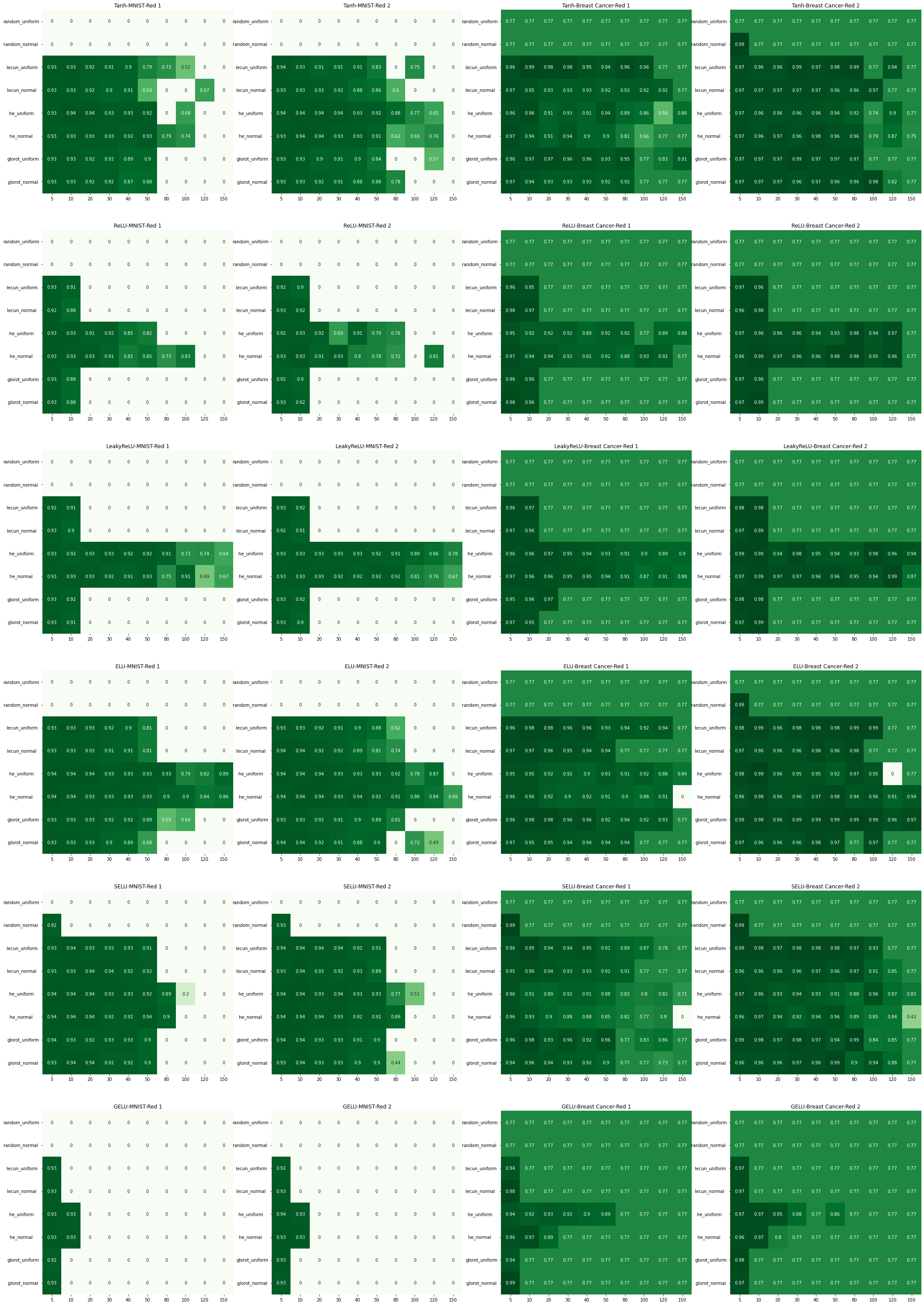Ahora vamos a ver como se comportan 4 redes distintas según el número de capas, el inicializador y la función de activación usada