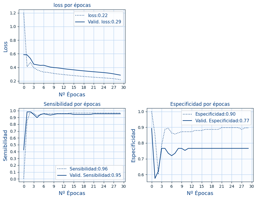 Muestra las siguientes métricas durante el entrenamiento y validación (para cada una de las épocas):