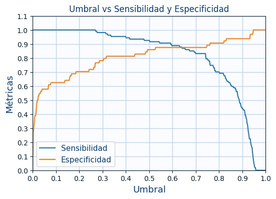 - El valor de la sensibilidad y la especificidad según el valor del umbral